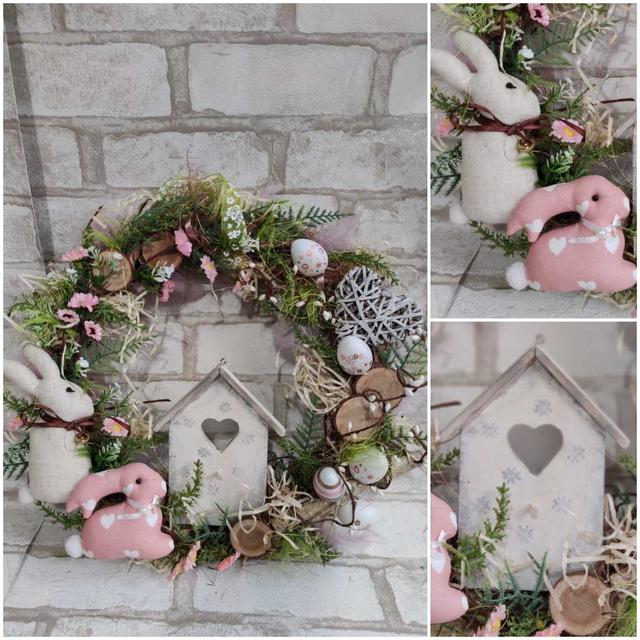 Великодній вінок з кроликами і будиночком, віночок пасхальний, 40-42 см