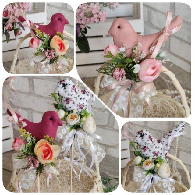 Довжина пташки 9,5 см. Під замовлення можливі корзини з пасхальними прикрасами різного кольору і розміру. Зверніть увагу! Декор пасхального кошика має різне наповнення, тому при замовленні обов'язково оговорюйте декорування з менеджером.