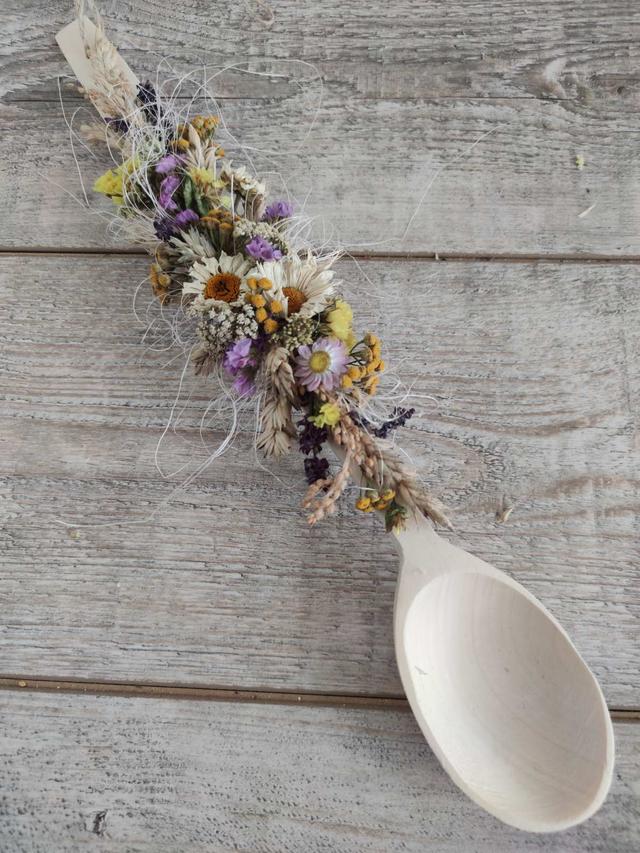 Ложка оберіг з натуральних матеріалів та сухоцвітів, h-40-45 см