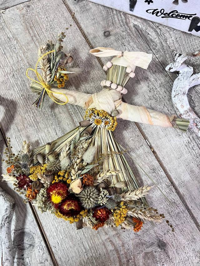 Лялька з натуральних матеріалів на Великдень, оберіг мотанка з букетиком , мотанка з сухоцвітів,32-30 см